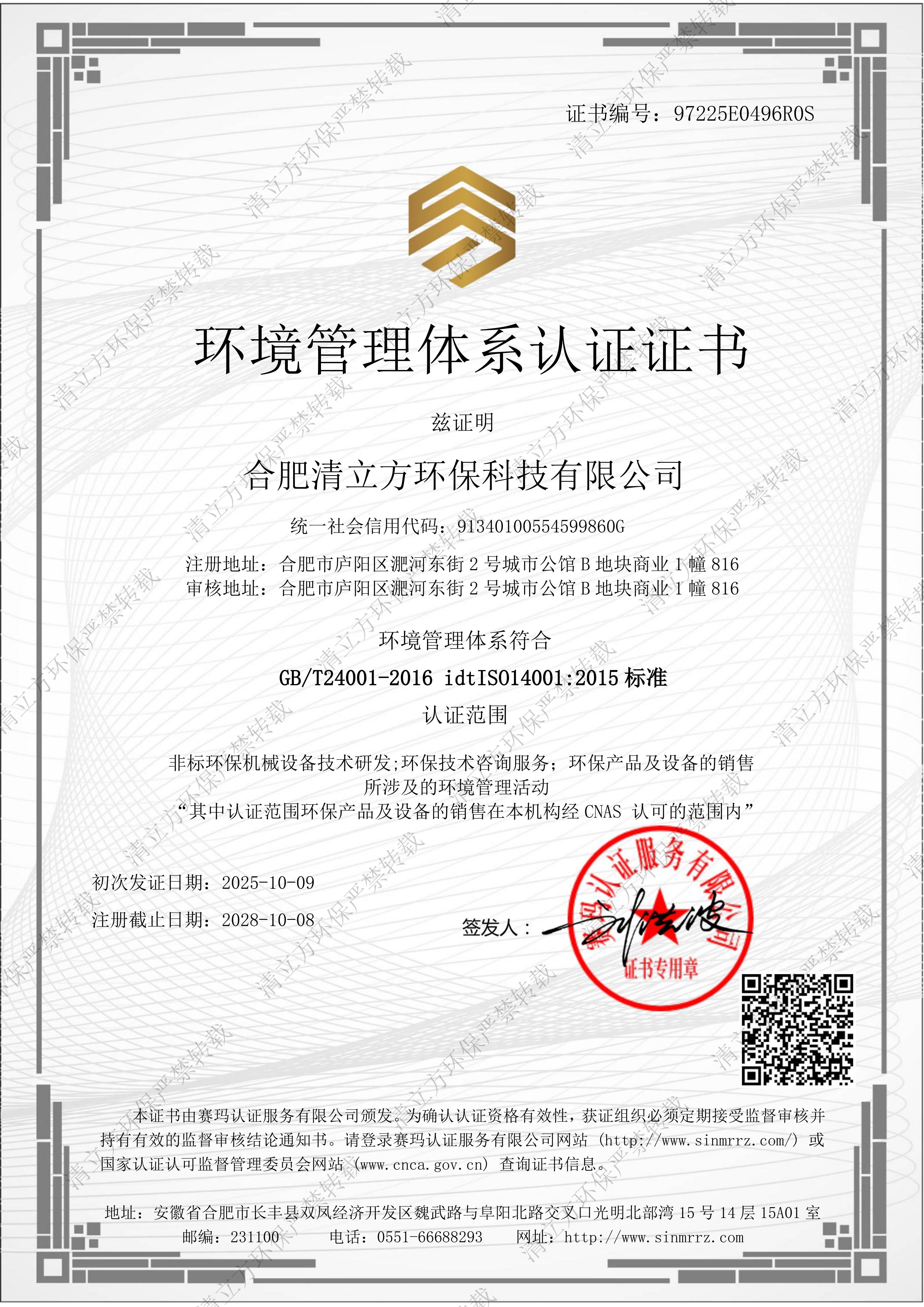 合肥清立方环保科技有限公司(以下简称“清立方”)是一家拥有高新环保技术和专业化环保设备制造服务能力的国家高新技术环保企业和安徽省五个一百技术创新型企业,我公司拥有一支环保从业经验丰富的专业技术队伍,集环保咨询、环保设备研发、环保工程设计、环保工程承包、设备成套加工运维于一体。清立方主要为客户提供粉尘废气处理、VOCs 废气治理、恶臭废气处理、工业污水、医疗污水、生活污水处理以及工厂内环境综合治理的定制化设计和服务。为了帮助客户实时了解掌握环保设备的运行工况,我公司研发了环境污染基于生产设备工况、环保治理设备工况以及末端排放工况三位一体的智能云平台环保智能工况监控系统,客户可以通过云平台和物联APP程序随时了解设备运行状况、也可以对运行故障进行溯源;特别需求的客户可以配套设备运行超标污染预警系统,真正做到放心生产和发展。